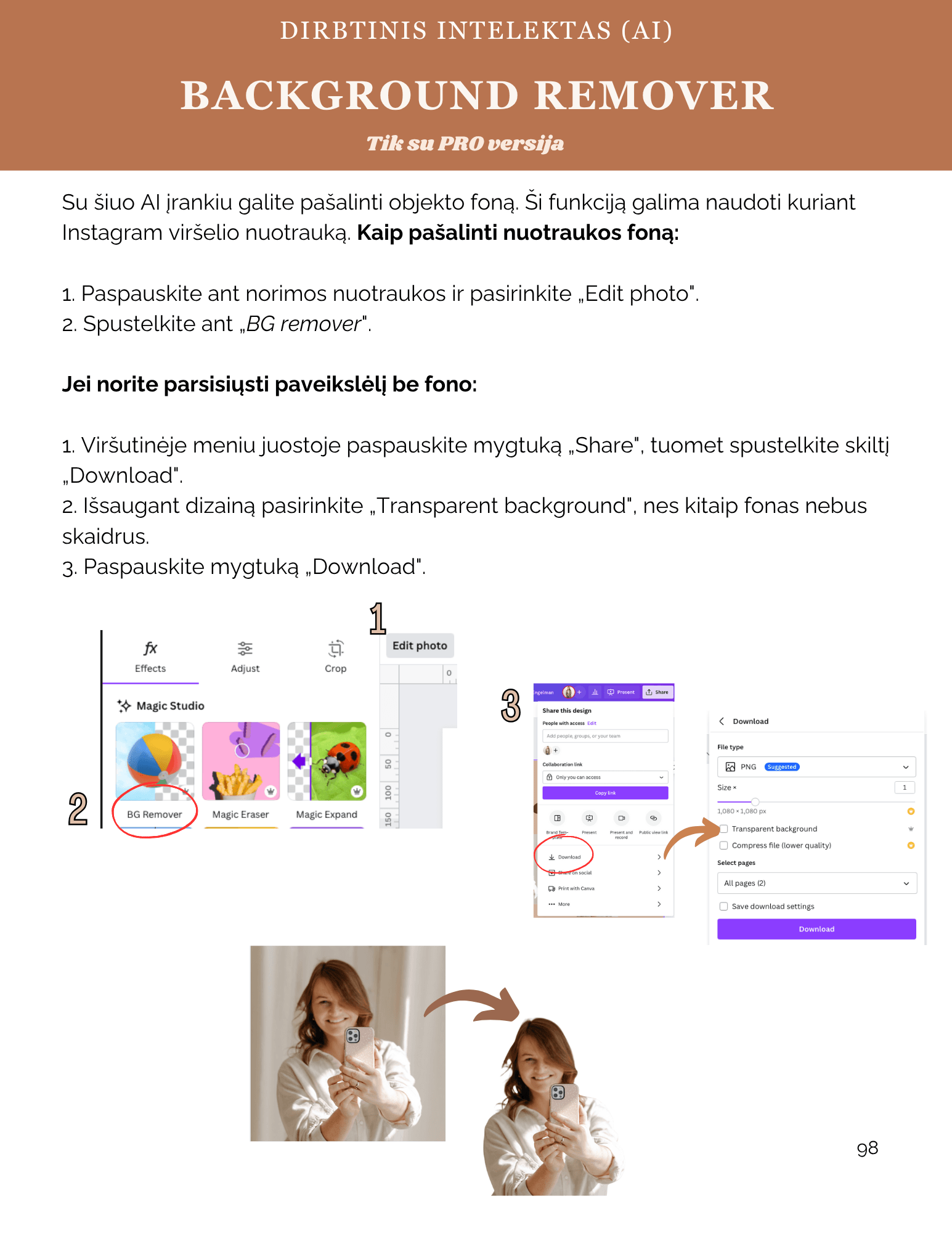 👉🏼 Išnaudosite AI (dirbtinio intelekto) potencialą „Canva” pagalba kuriant vizualus;