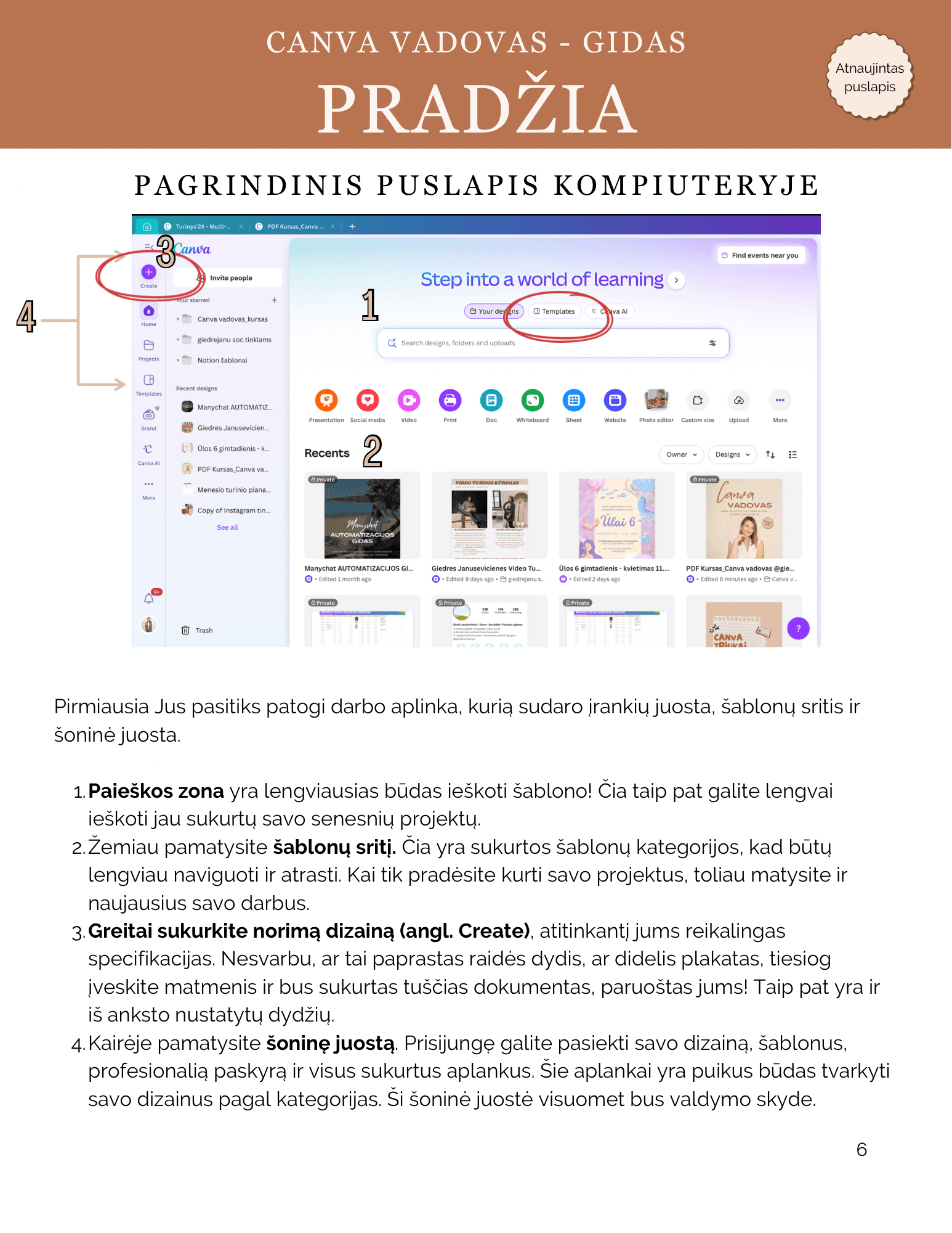 👉🏼 Susipažinsite su visomis „Canva” redagavimo funkcijomis ir navigacija;